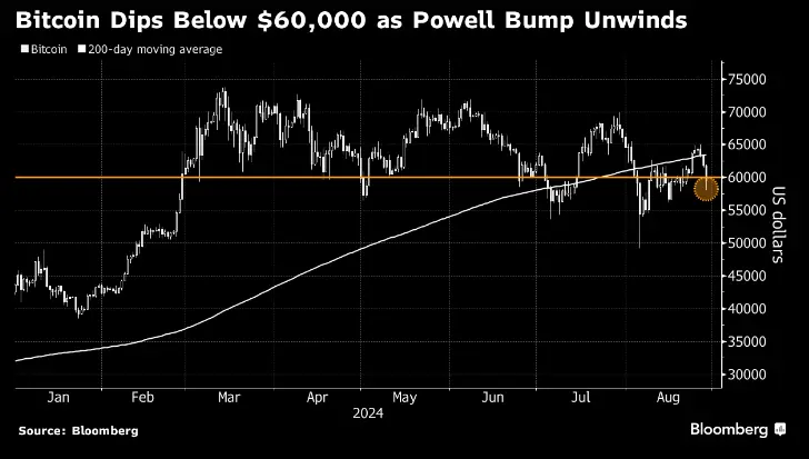 8月28日凌晨,作为全球最大的数字资产,比特币跌破6万美元大关,还带动了整个加密货币市场的普遍下跌,其中第二大代币以太坊也未能幸免,跌幅一度超过7%。比特币一度下跌超过6%,为8月5日以来的最大跌幅。截至发稿,交易价格为59175美元,以太坊易价格约为2438美元。此次比特币的暴跌,部分原因是市场正在消化上周美联储主席...